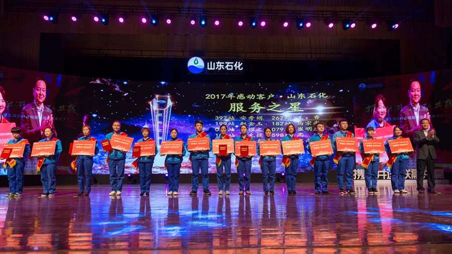 在會(huì)議現(xiàn)場(chǎng),李新江總經(jīng)理宣讀了2017年度的表彰決定,并評(píng)選出2017年度感動(dòng)客戶·山東石化十佳油品銷量增長(zhǎng)站點(diǎn)獎(jiǎng)、山東石化十佳非油品銷售站點(diǎn)、山東石化十佳營(yíng)銷成果站點(diǎn)獎(jiǎng)、山東石化油品質(zhì)量管理獎(jiǎng)、山東石化十佳站點(diǎn)獎(jiǎng)、2017年度感動(dòng)山東石化· 一路同行客戶獎(jiǎng)、2017年度感動(dòng)客戶·山東石化十佳服務(wù)之星、山東石化十佳站經(jīng)理獎(jiǎng)、山東石化十佳推介獎(jiǎng)、山東石化公益人物獎(jiǎng)等獎(jiǎng)項(xiàng),相關(guān)領(lǐng)導(dǎo)予以頒獎(jiǎng)。