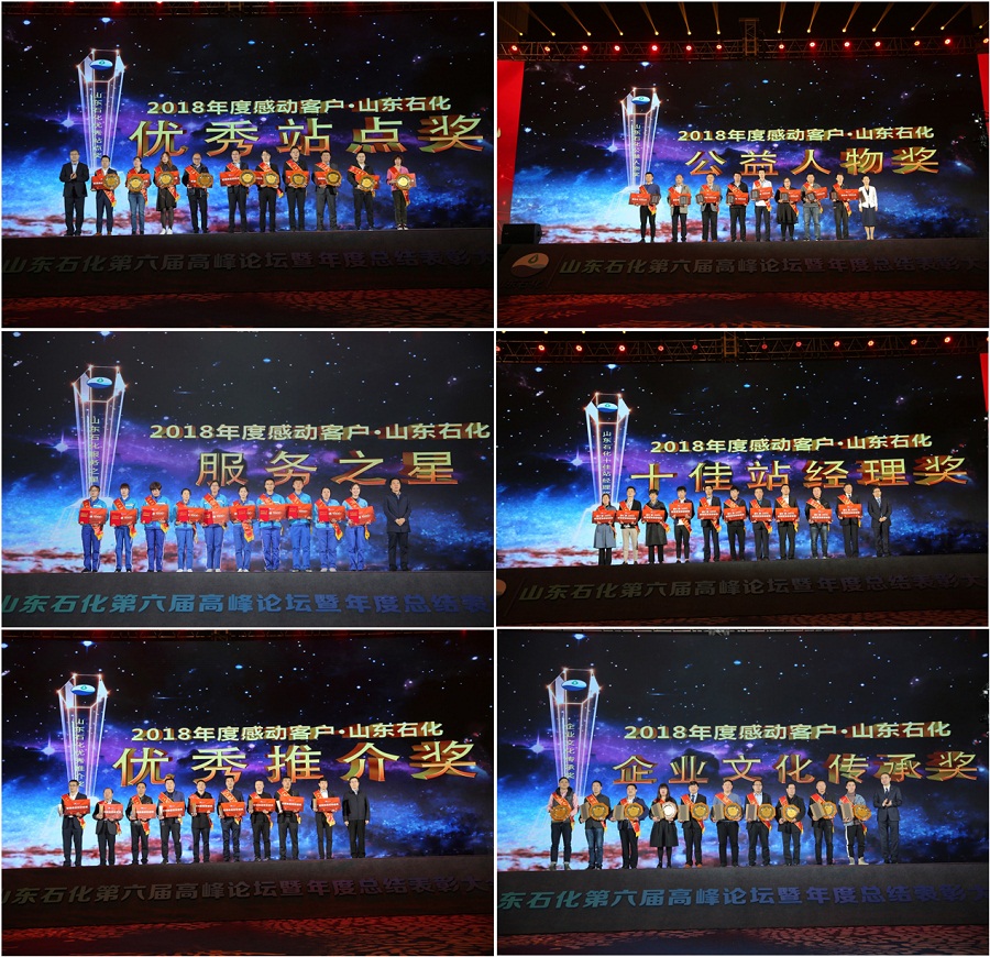 本次會議評選出了2018年度感動客戶·山東石化非油品合作優(yōu)秀站點、山東石化智慧能源應(yīng)用獎、山東石化營銷聯(lián)動優(yōu)秀站點、山東石化油品合作優(yōu)秀站點、山東石化油品質(zhì)量管理獎、山東石化十佳站點、山東石化公益人物獎、山東石化服務(wù)之星、山東石化十佳站經(jīng)理獎、山東石化優(yōu)秀推介獎、山東石化企業(yè)文化傳承獎等獎項,相關(guān)領(lǐng)導(dǎo)予以頒獎并對優(yōu)秀站點與個人的突出貢獻表示感謝與肯定。