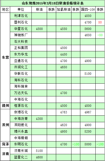 2015年3月18日山東地煉柴油價格