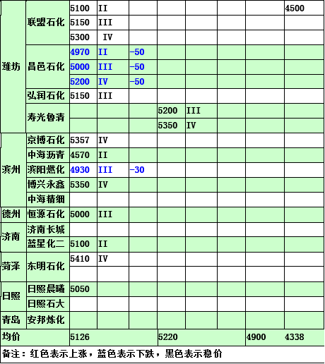 2015年4月20日山東地煉汽油價格