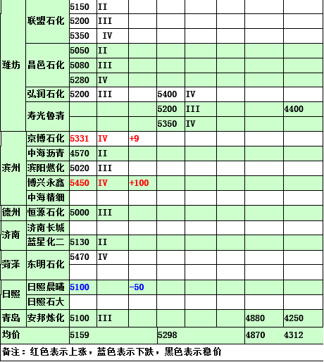 2015年5月4日山東地煉汽油價格