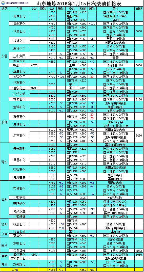 2016年1月15日山東地?zé)捚裼蛢r(jià)格表