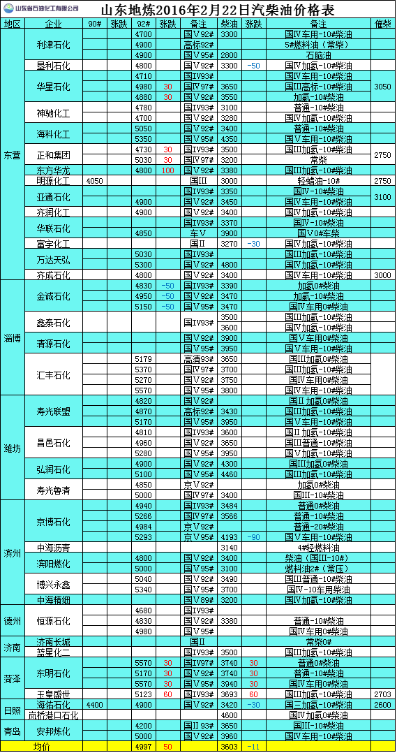 2016年2月22日山東地?zé)捚裼蛢r(jià)格表