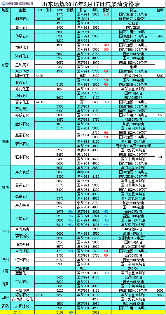 2016年3月17日山東地?zé)捚裼蛢r(jià)格表