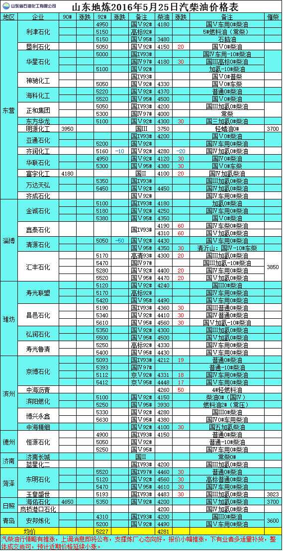 2016年5月25日山東地?zé)捚裼蛢r(jià)格表