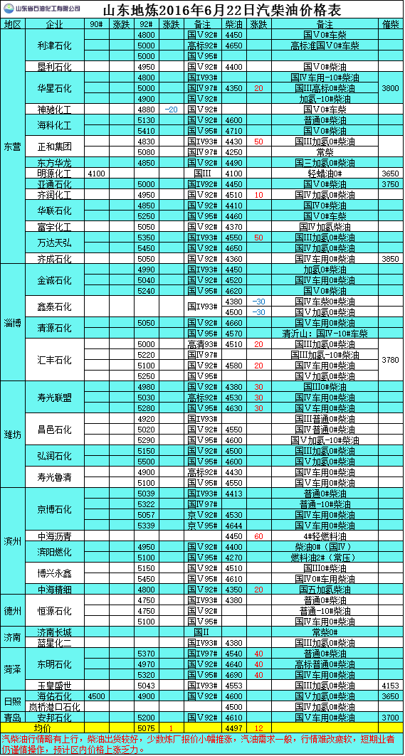 2016年6月22日山東地?zé)捚裼蛢r格表