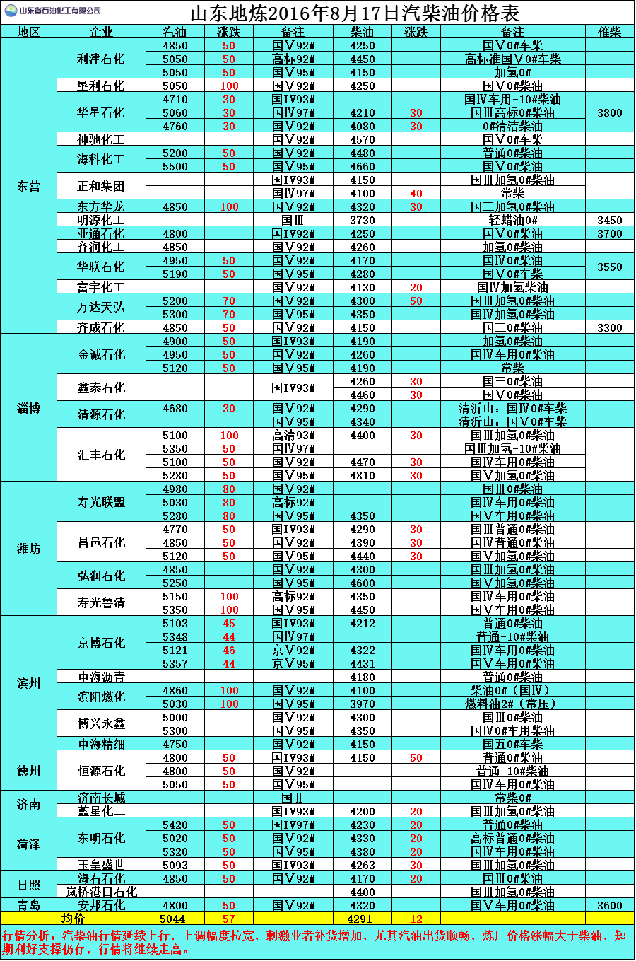 行情分析:汽柴油行情延續(xù)上行,上調(diào)幅度拉寬,刺激業(yè)者補貨增加,尤其汽油出貨順暢,煉廠價格漲幅大于柴油,短期利好支撐仍存,行情將繼續(xù)走高。