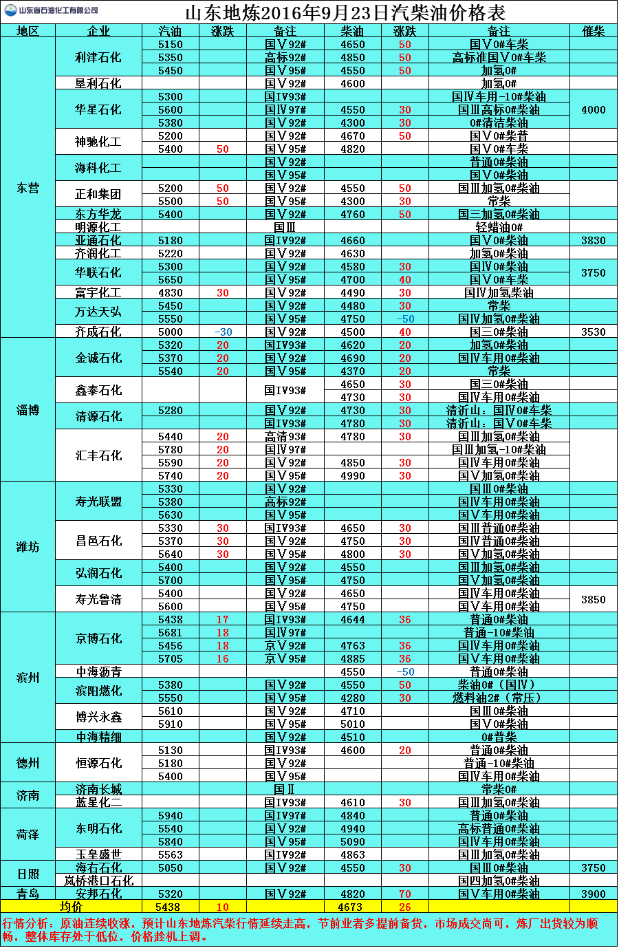 9月23日山東地煉汽柴油價格