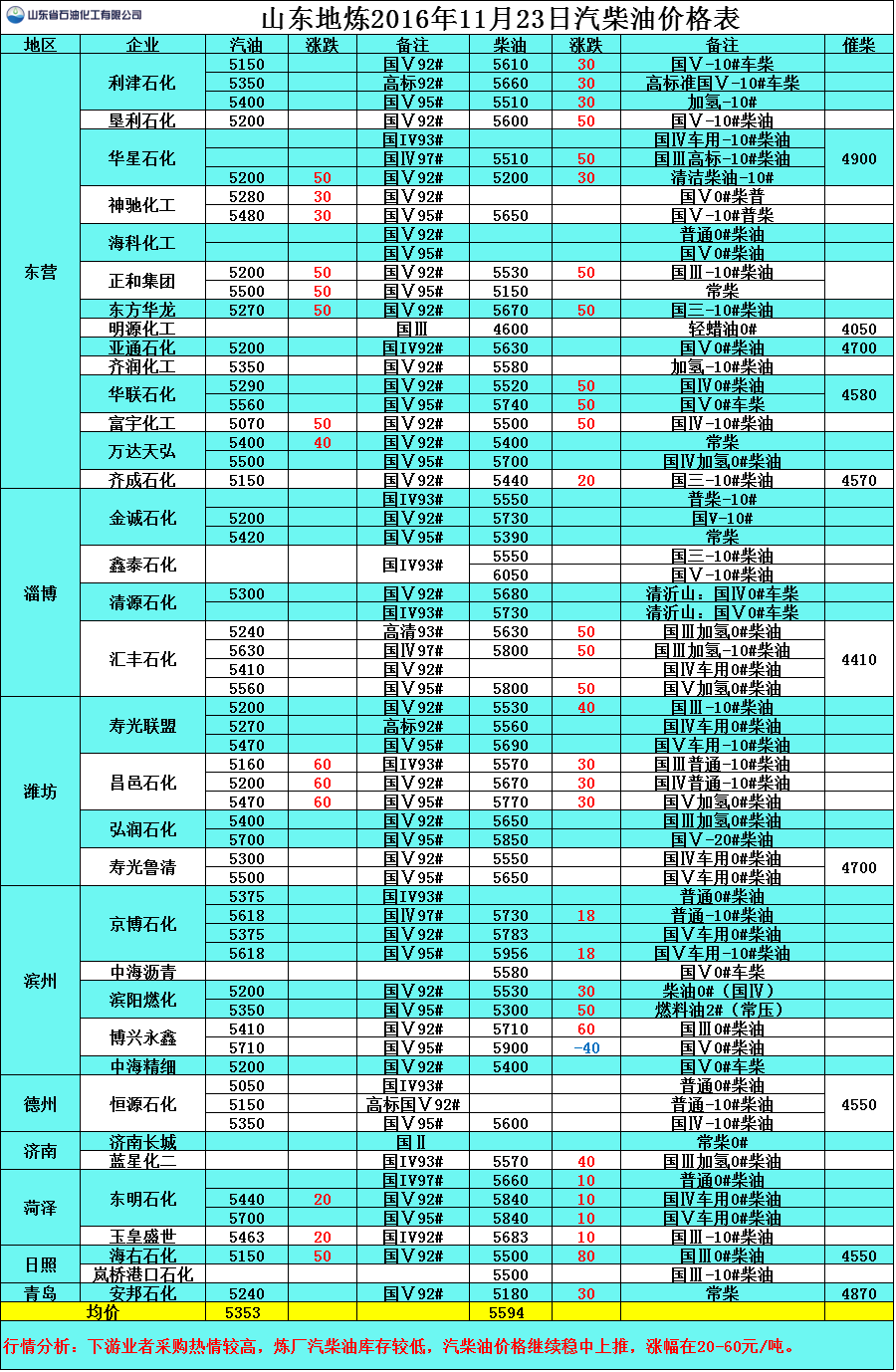行情分析:下游業(yè)者采購(gòu)熱情較高,煉廠汽柴油庫(kù)存較低,汽柴油價(jià)格繼續(xù)穩(wěn)中上推,漲幅在20-60元/噸。