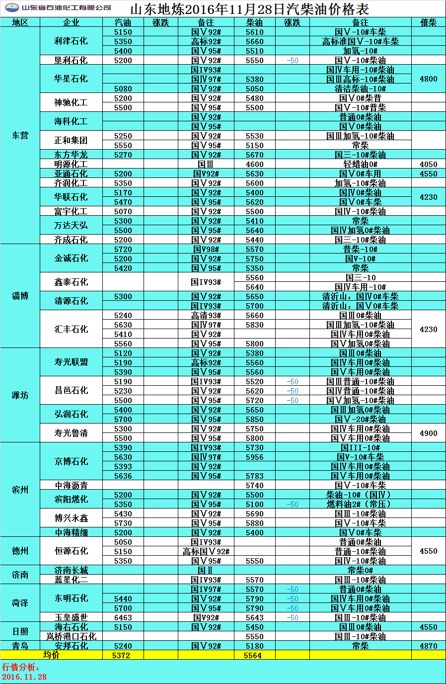 11月28日山東地煉汽柴油價格