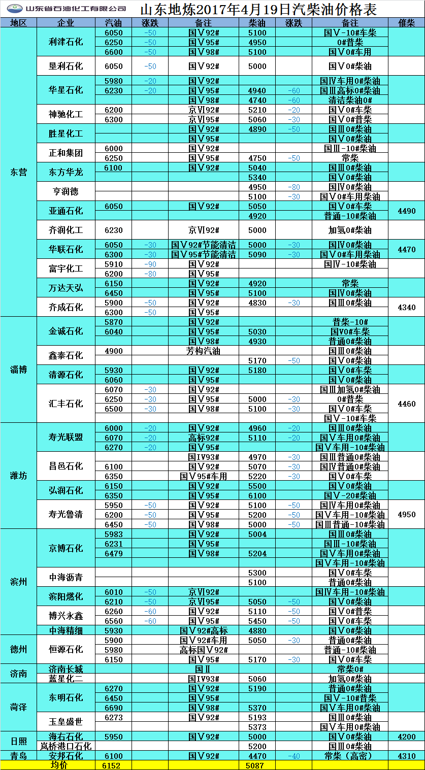 2017年4月19日山東地?zé)捚裼蛢r(jià)格