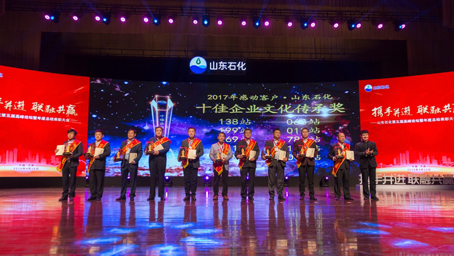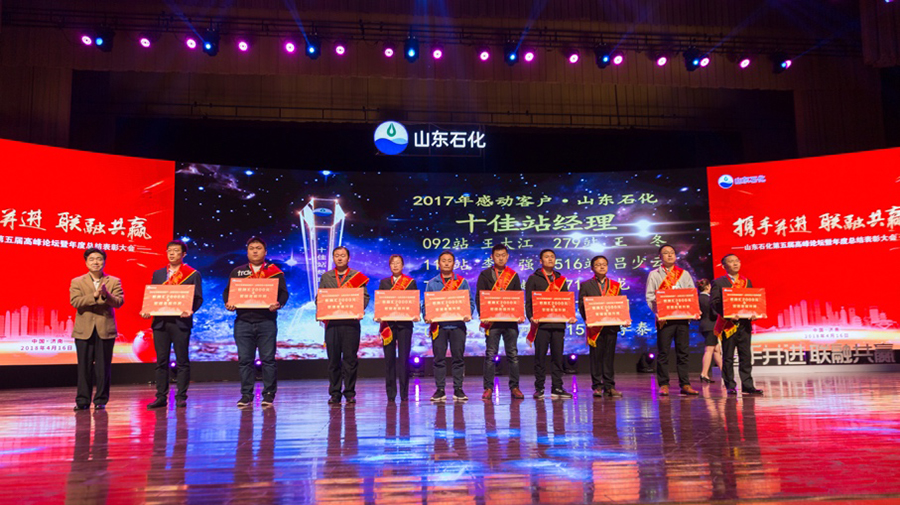 在會(huì)議現(xiàn)場(chǎng),李新江總經(jīng)理宣讀了2017年度的表彰決定,并評(píng)選出2017年度感動(dòng)客戶·山東石化十佳油品銷量增長(zhǎng)站點(diǎn)獎(jiǎng)、山東石化十佳非油品銷售站點(diǎn)、山東石化十佳營(yíng)銷成果站點(diǎn)獎(jiǎng)、山東石化油品質(zhì)量管理獎(jiǎng)、山東石化十佳站點(diǎn)獎(jiǎng)、2017年度感動(dòng)山東石化· 一路同行客戶獎(jiǎng)、2017年度感動(dòng)客戶·山東石化十佳服務(wù)之星、山東石化十佳站經(jīng)理獎(jiǎng)、山東石化十佳推介獎(jiǎng)、山東石化公益人物獎(jiǎng)等獎(jiǎng)項(xiàng),相關(guān)領(lǐng)導(dǎo)予以頒獎(jiǎng)。