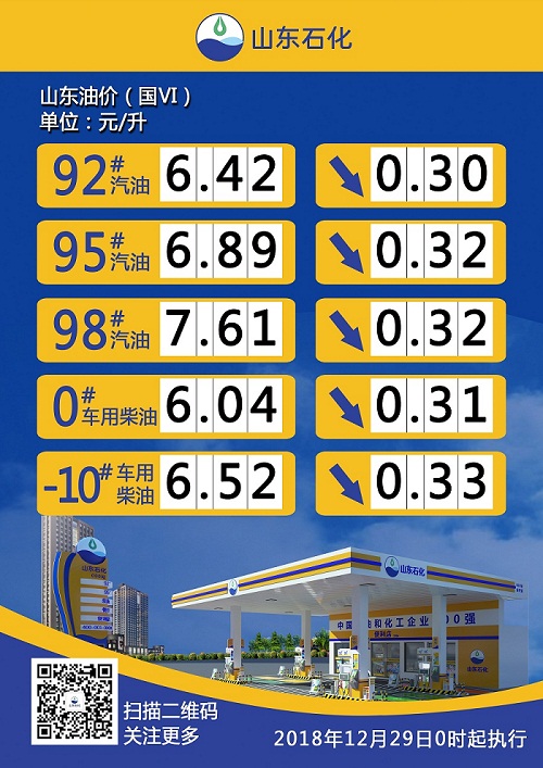 按照現(xiàn)行成品油價格形成機制,自2018年12月28日24時起,國內汽、柴油價格(標準品,下同)每噸分別降低370元和355元。相關價格聯(lián)動及補貼政策按現(xiàn)行規(guī)定執(zhí)行。