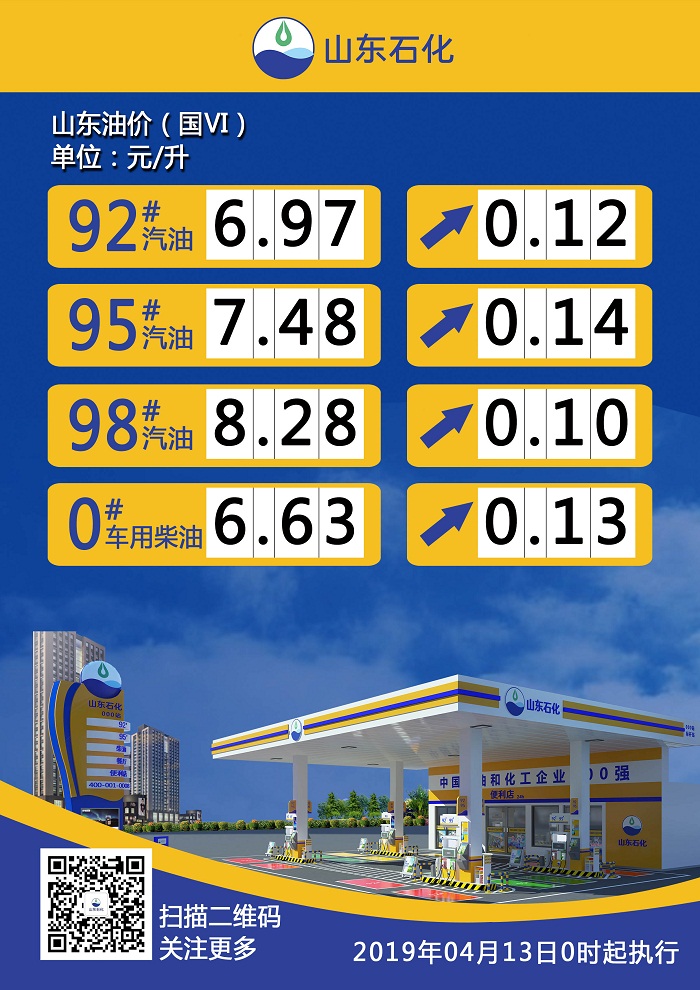 【調(diào)價(jià)公示】山東省汽、柴油最新零售指導(dǎo)價(jià)(190413)