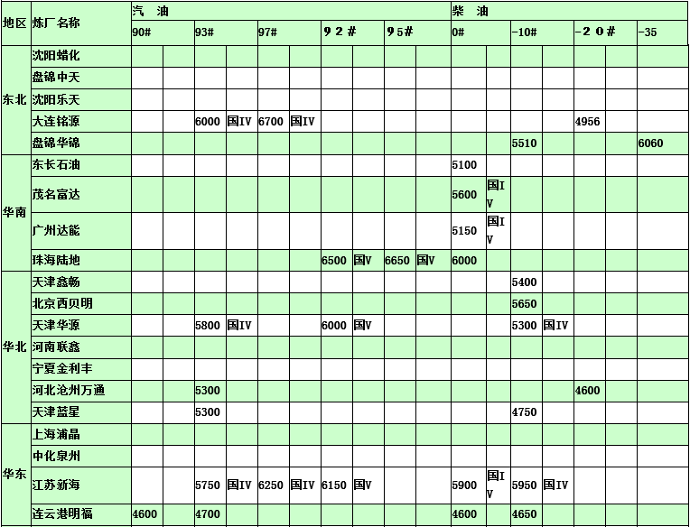 國內(nèi)煉廠2015年2月11日汽柴油價格表