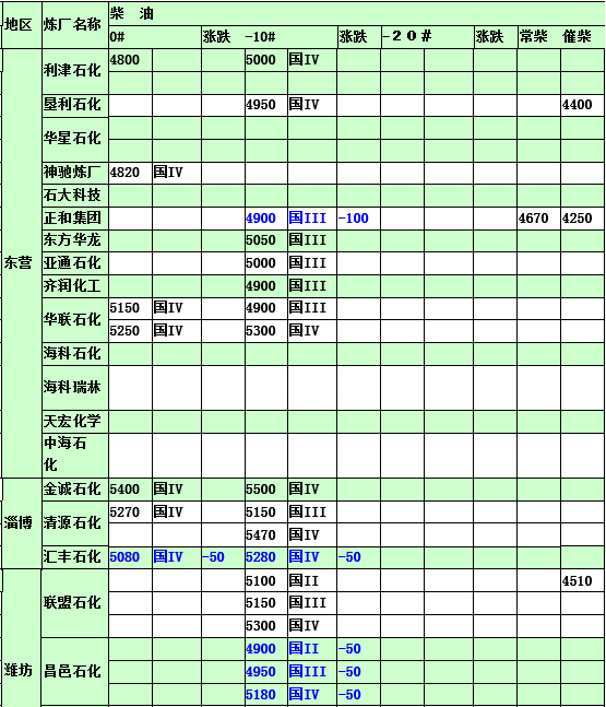 2015年3月6日山東地煉柴油價格