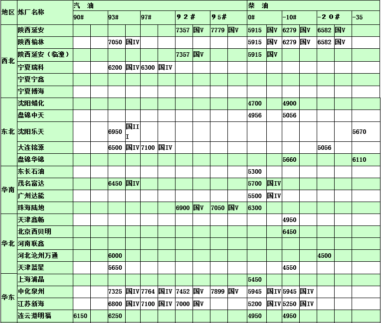國內(nèi)煉廠2015年3月9日汽柴油價格表