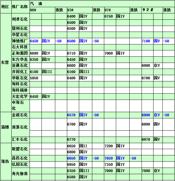 國(guó)內(nèi)煉廠2015年3月9日汽柴油價(jià)格表