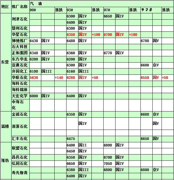 2015年3月30日山東地煉汽油價格