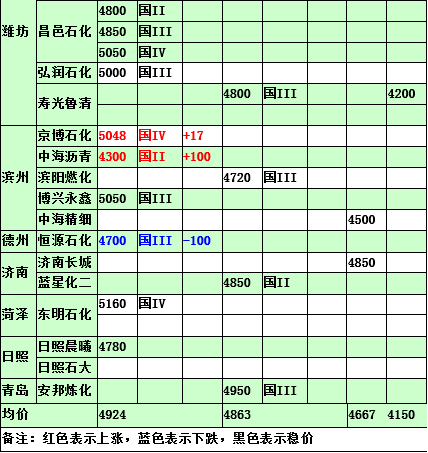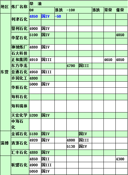 2015年3月31日山東地煉柴油價格