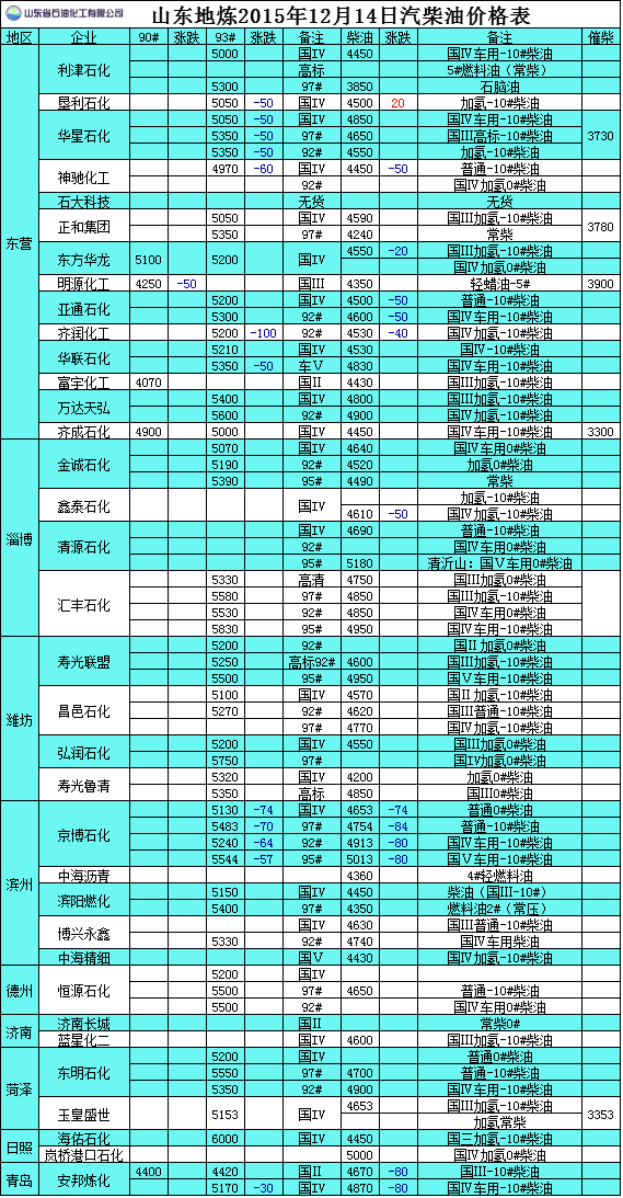2015年12月14日山東地?zé)捚裼蛢r(jià)格表