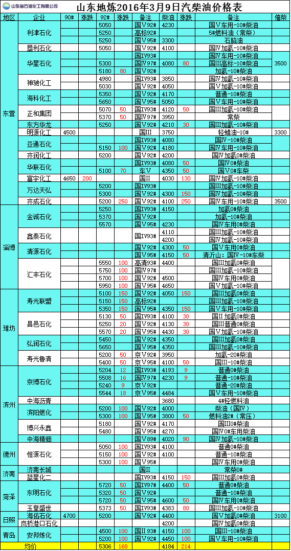 2016年3月10日山東地?zé)捚裼蛢r(jià)格表