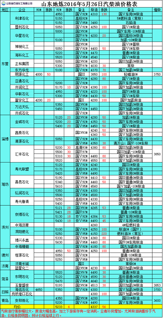 2016年5月26日山東地?zé)捚裼蛢r(jià)格表