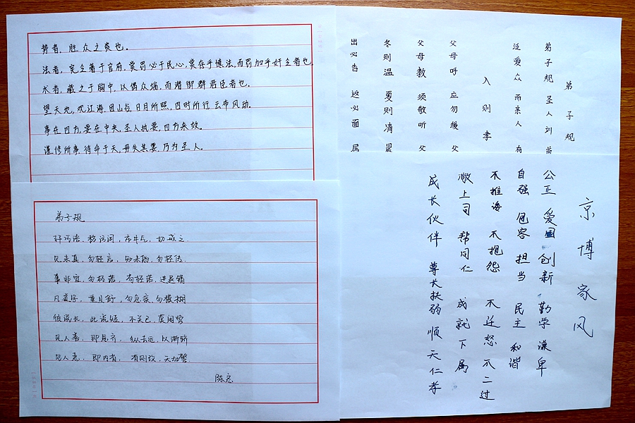 本屆書法比賽初賽采取個(gè)人提交以國(guó)學(xué)內(nèi)容為書寫主題的硬筆書法作品的形式,在提交的23幅初賽作品中,既有《論語》、《弟子規(guī)》名句,也有道家、孝經(jīng)名段,參賽作品或?yàn)t灑,或清秀,或剛健,或大氣,各具特色,展示了公司家人們的書寫底蘊(yùn)和審美情趣。在初賽中,通過微信網(wǎng)絡(luò)投票的方式,選取票數(shù)最多的前十名家人進(jìn)入決賽。