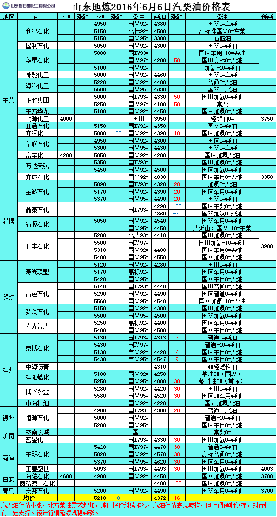 2016年6月6日山東地?zé)捚裼蛢r(jià)格表