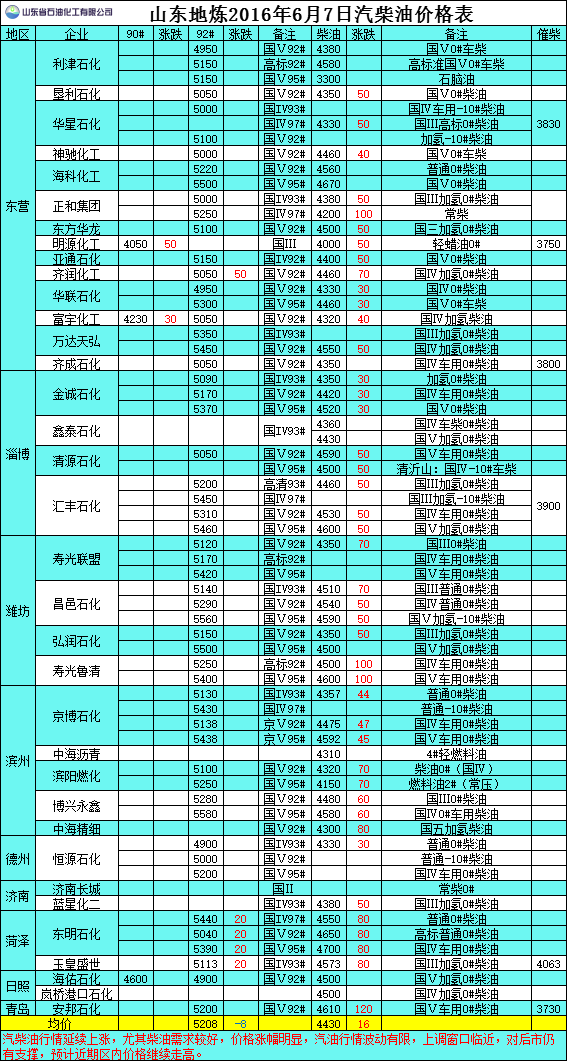 2016年6月7日山東地?zé)捚裼蛢r(jià)格表