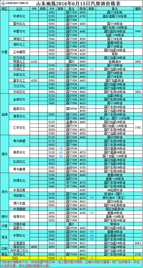 2016年6月13日山東地?zé)捚裼蛢r(jià)格表