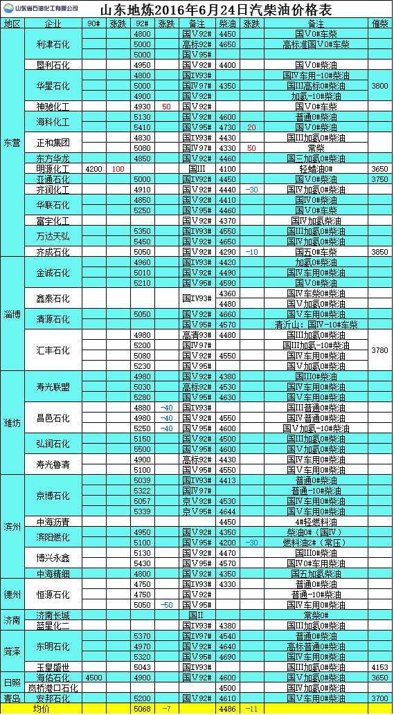 6月24日山東地煉汽柴油價格