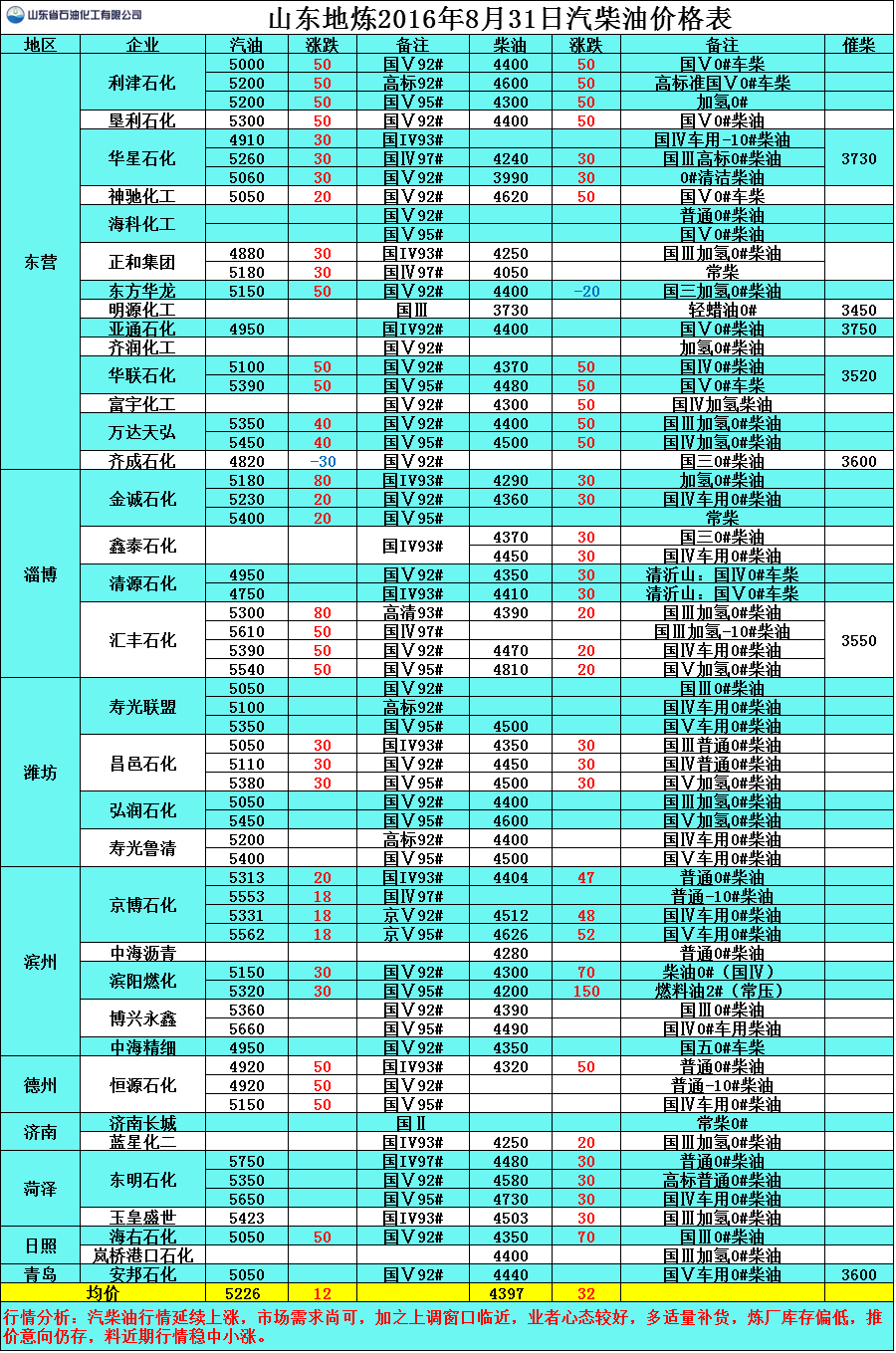 8月31日山東地?zé)捚裼蛢r格