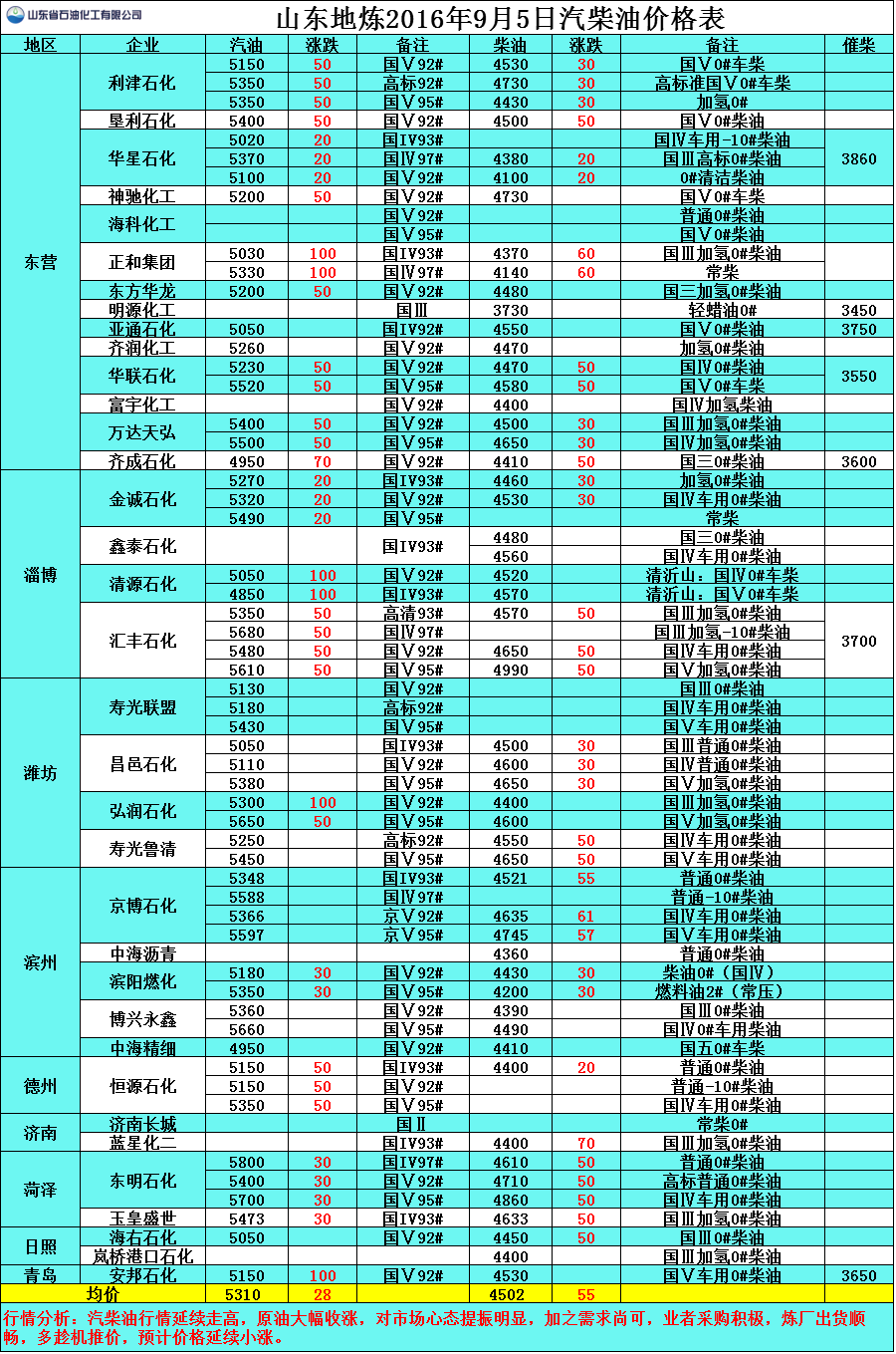 行情分析:汽柴油行情延續(xù)走高,原油大幅收漲,對市場心態(tài)提振明顯,加之需求尚可,業(yè)者采購積極,煉廠出貨順暢,多趁機推價,預(yù)計價格延續(xù)小漲。