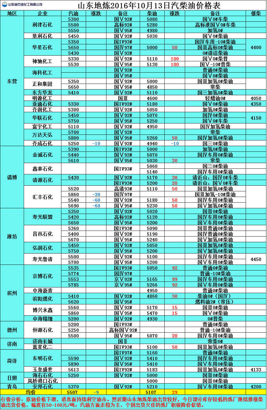行情分析:原油價格下滑,消息面持續(xù)利空油市。然近期山東地?zé)挷裼统鲐涊^好,今日部分庫存較低的煉廠繼續(xù)推漲柴油出貨價格,幅度在50-100元/噸;汽油方面走穩(wěn)為主,個別出貨欠佳的煉廠積極降價促銷。