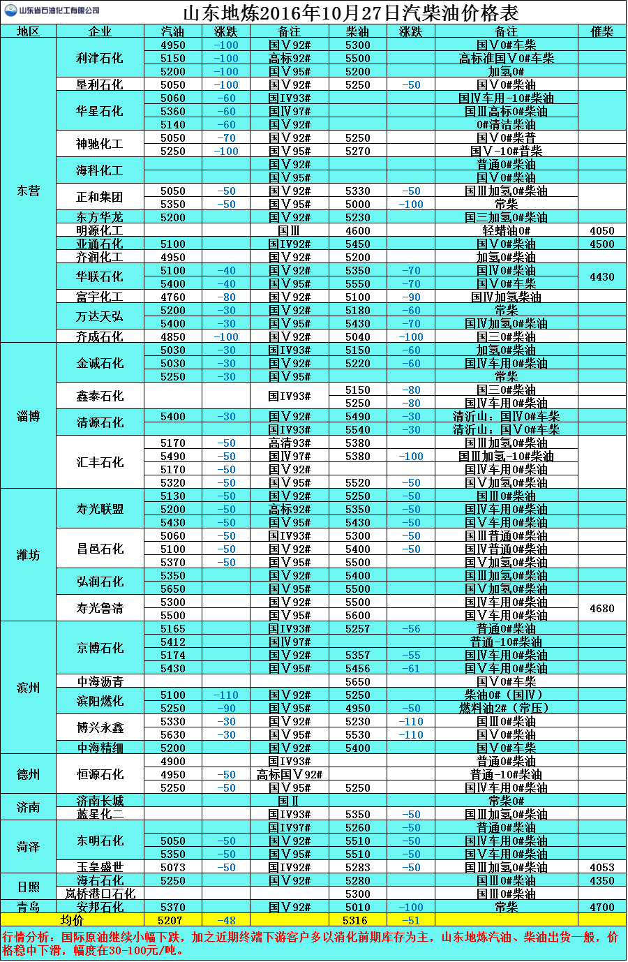 行情分析:國際原油繼續(xù)小幅下跌,加之近期終端下游客戶多以消化前期庫存為主,山東地?zé)捚?、柴油出貨一般,價格穩(wěn)中下滑,幅度在30-100元/噸。