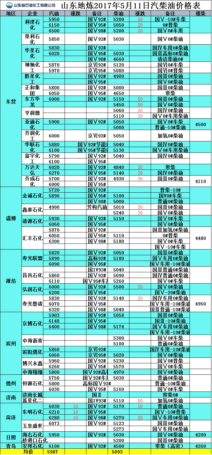2017年5月11日山東地?zé)捚裼蛢r(jià)格