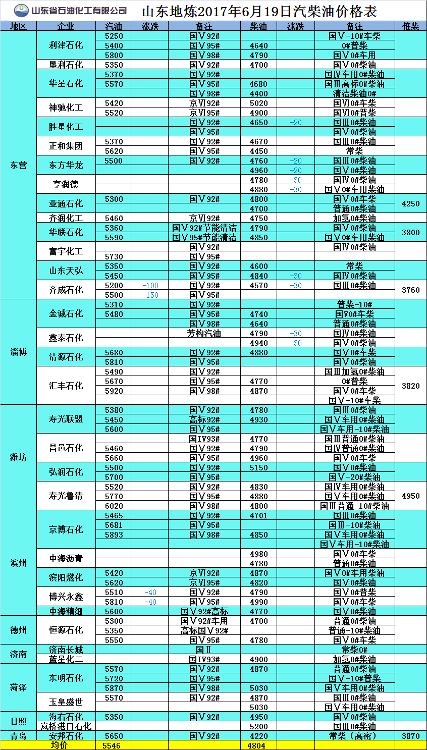 2017年6月19日山東地?zé)捚裼蛢r(jià)格